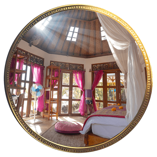 The spiritual heart of Shambala is its sacred temple space, designed to be a sanctuary for profound group practices, ceremonies, and sacred rituals. It is here that you’ll engage in daily spiritual teachings, meditative practices, and Evolutionary Tantra sessions, all held in a space that reflects sacred geometry and amplifies transformative energy. By evening candlelight, we will join in the temple for tailored ceremonies to experience true union with the Beloved Within together, and celebrate with live kirtan.